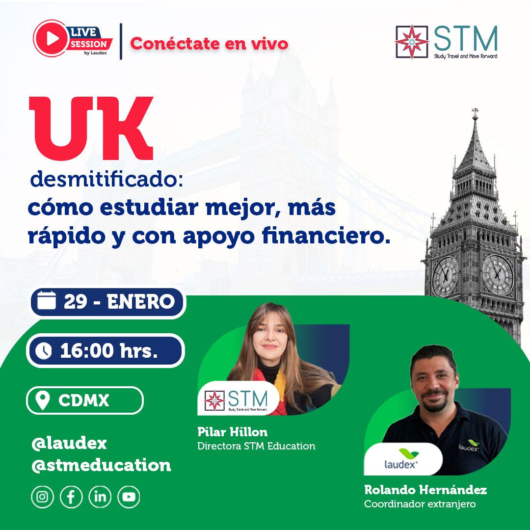 En esa sesión, descubrirás: -Opciones para financiar tus estudios sin complicaciones con Laudex