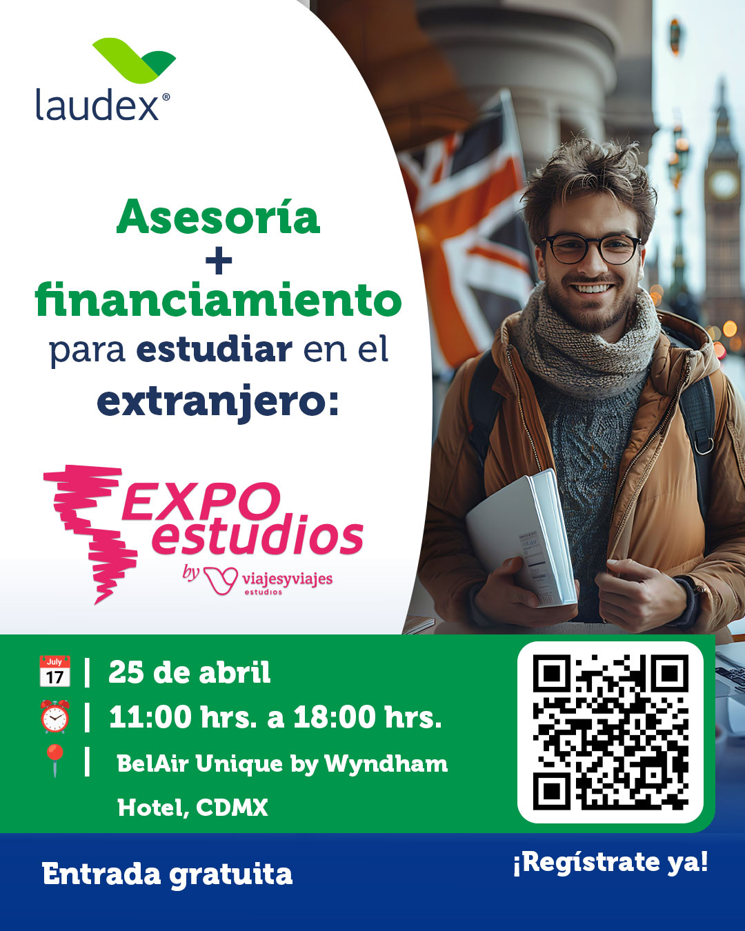 En este evento podrás conocer opciones de estudio y trabajo en más de 20 países, sin límite de edad, y entender cómo transformar tu meta de estudiar fuera en un plan real.